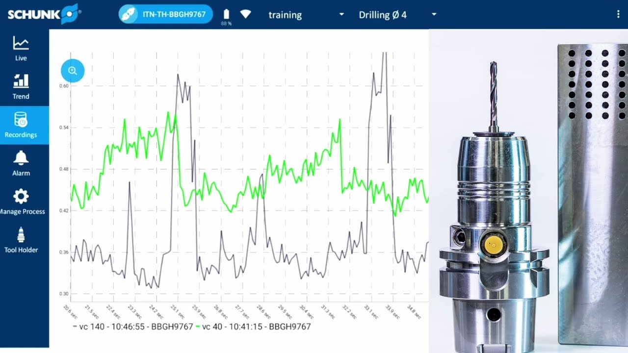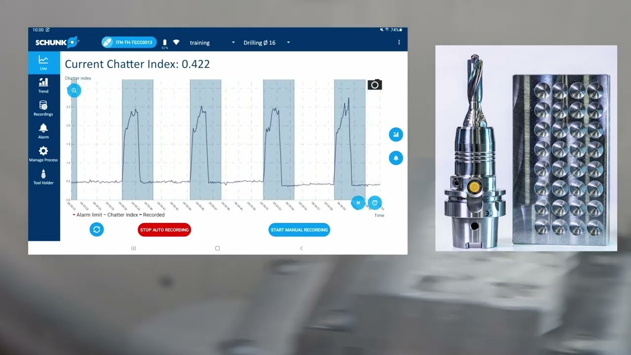 iTENDO² 从数据采集开始将变得更透明、更容易。通过简单的点击即可将刀柄连接到平板,iTENDO² 可以立即检测到异常情况,帮助您在不同工艺中提升生产效率。在平板电脑上,可以实时跟踪和记录切削过程,也可以在参数中设置具体限值条件,开启自动记录。